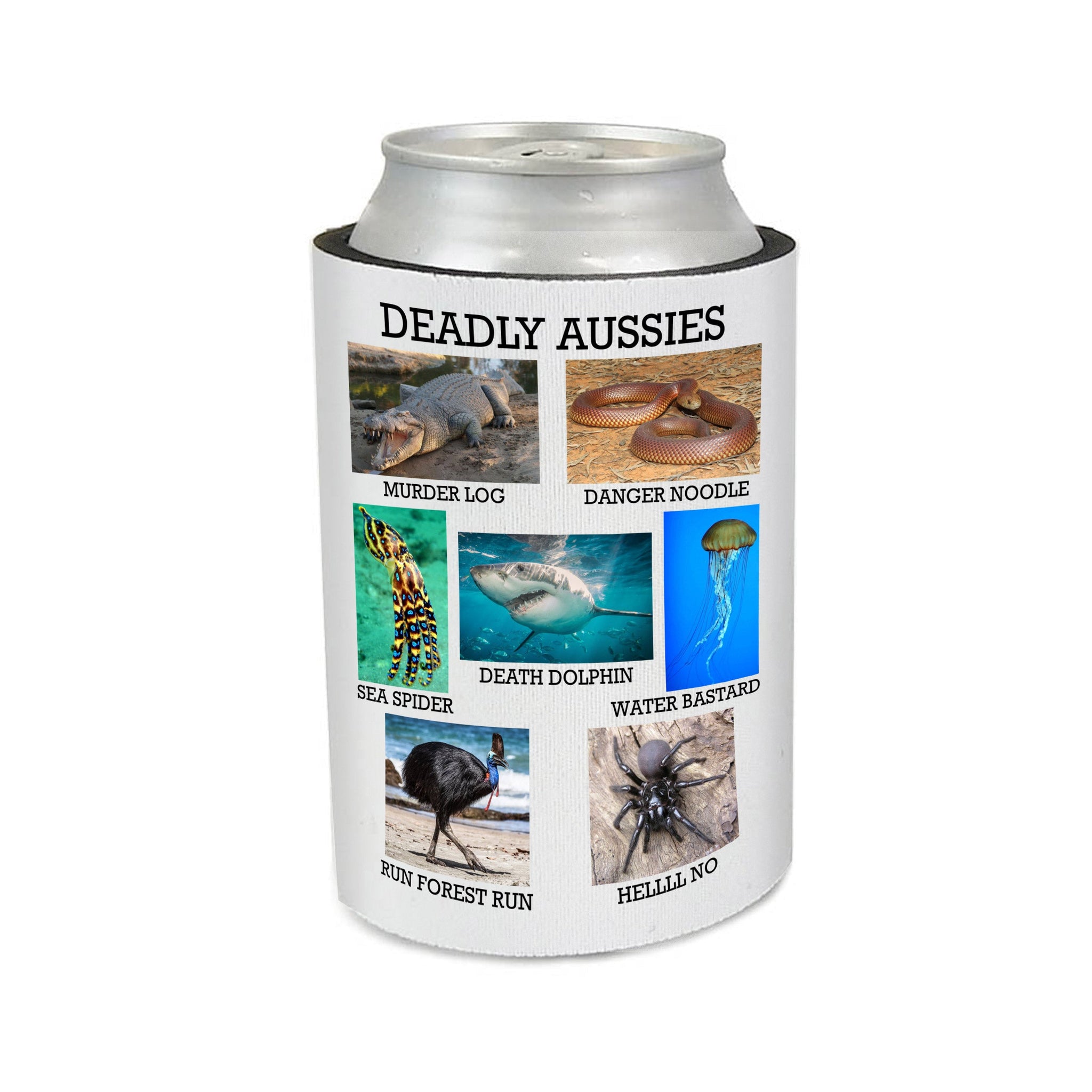 The Deadly Aussies Beer Cooler showcasing our beloved deadly bois. They're a bit how ya goin'!
