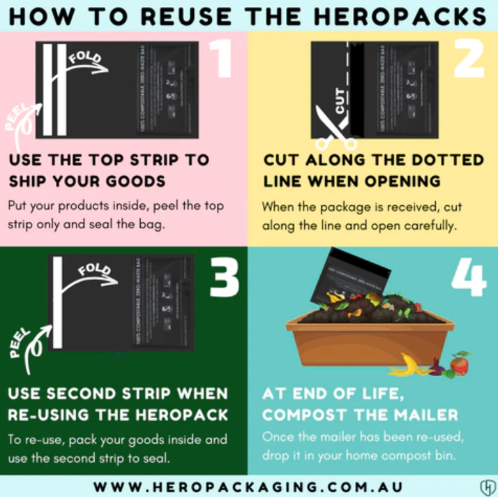 These satchels are everything! The compostable packaging material easily breaks down when it is buried in soil or disposed of in a compost bin. During break down, the materials do not emit any harmful toxins and quickly convert into rich compost, which we have been using for our plants.