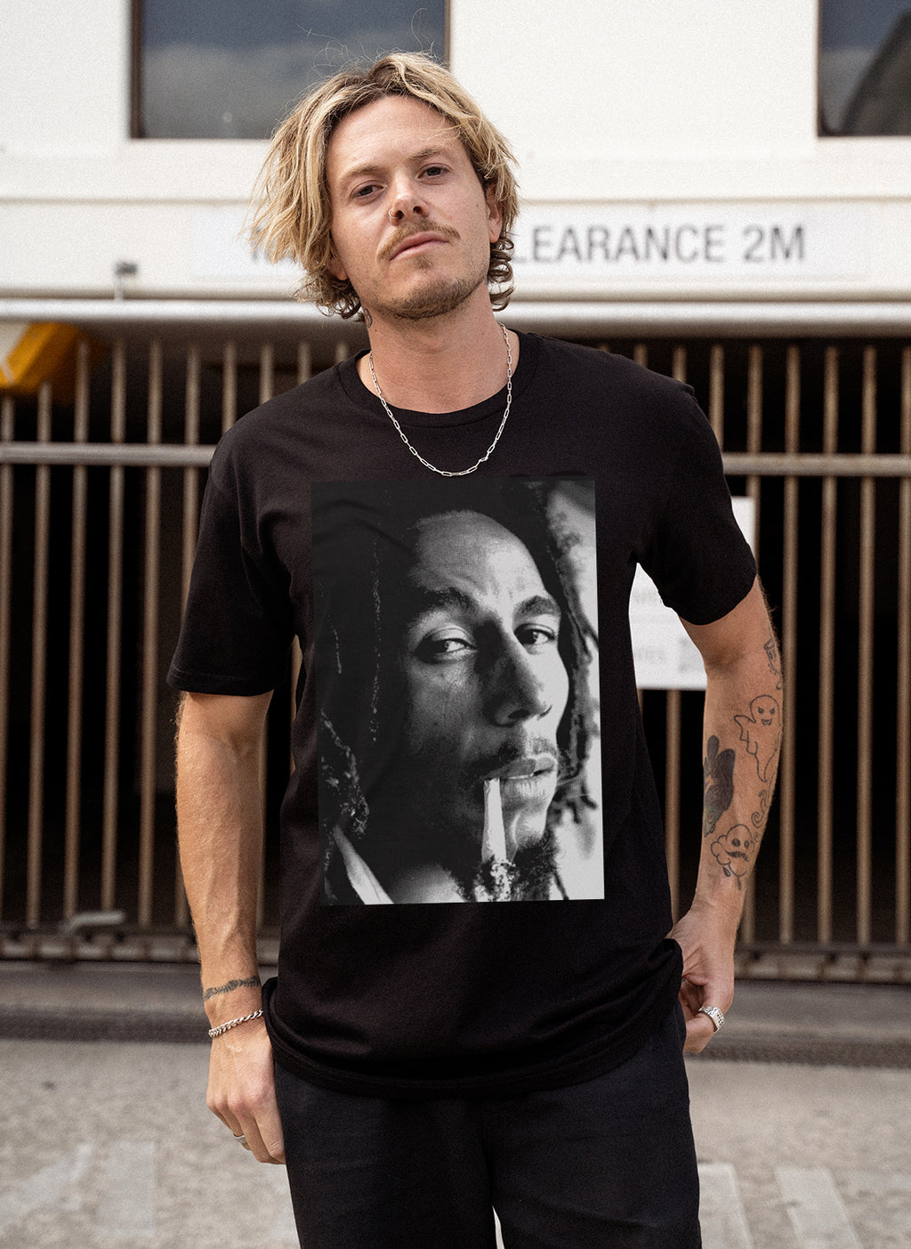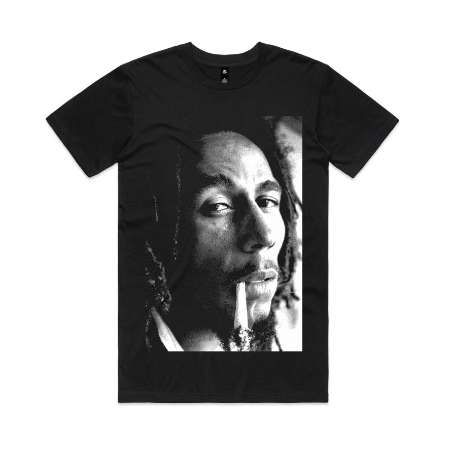 A crisp black and white print of one of the most iconic faces in reggae culture. Sharp lines, bold attitude and that unmistakable chilled out look.